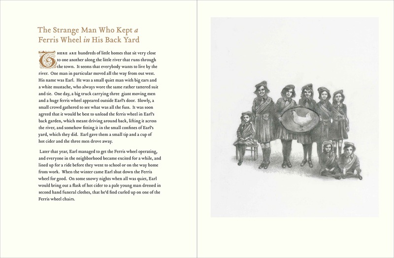 This collection of very short stories from acclaimed musician John Southworth will tweak your mind and pique your imagination. Meet the boy with grey hair who spends his days on a cargo ship peeling potatoes, a strange man who keeps a Ferris wheel in his backyard and a whale that lives in a man-made lake on the top of a faraway hill. Equally intriguing and unusual black and white illustrations by David Ouimet bring the bizarre, evocative characters to life.