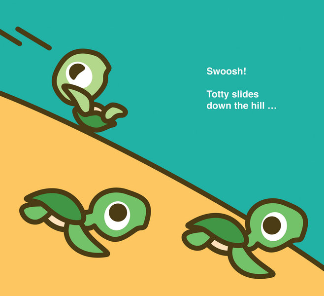 Totty is the smallest of all the sea turtle babies and the last to hatch. His brothers and sisters are far down the beach, crawling towards the sea. Totty tries to catch up to them, but it seems impossible. Will he find a way?
