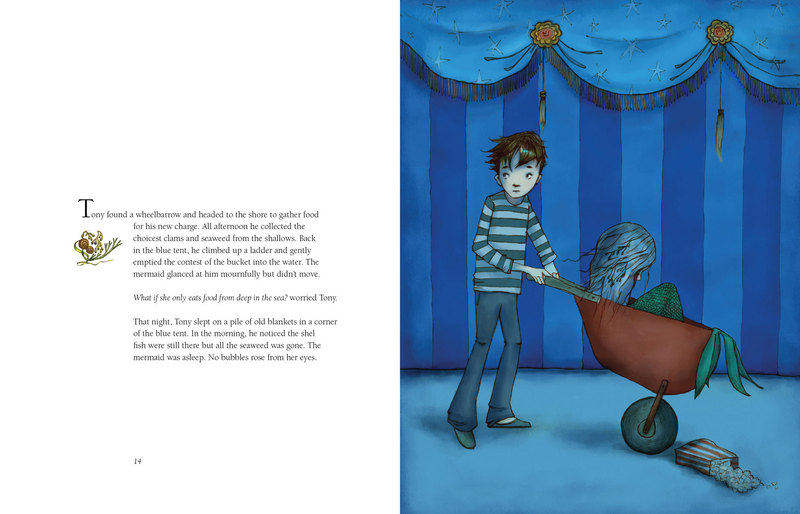 Maude likes her two tails, until the other merchildren begin teasing her for being different. She doesn't think things can get worse. But then she is captured by a fisherman. Meanwhile, on land, Tony faces difficulties of his own. Born with webbed fingers, he too is an outcast. Hoping to find acceptance, he joins a circus. But the Ring Mistress is cruel and life there is unbearable. Until the circus purchases the mermaid. Tony and Maude slowly become friends. Will they find a way to escape not only the terrible circus, but also their own sorrows? Two unique characters and two different worlds mean twice the adventure in this new fairy tale with stunning art.